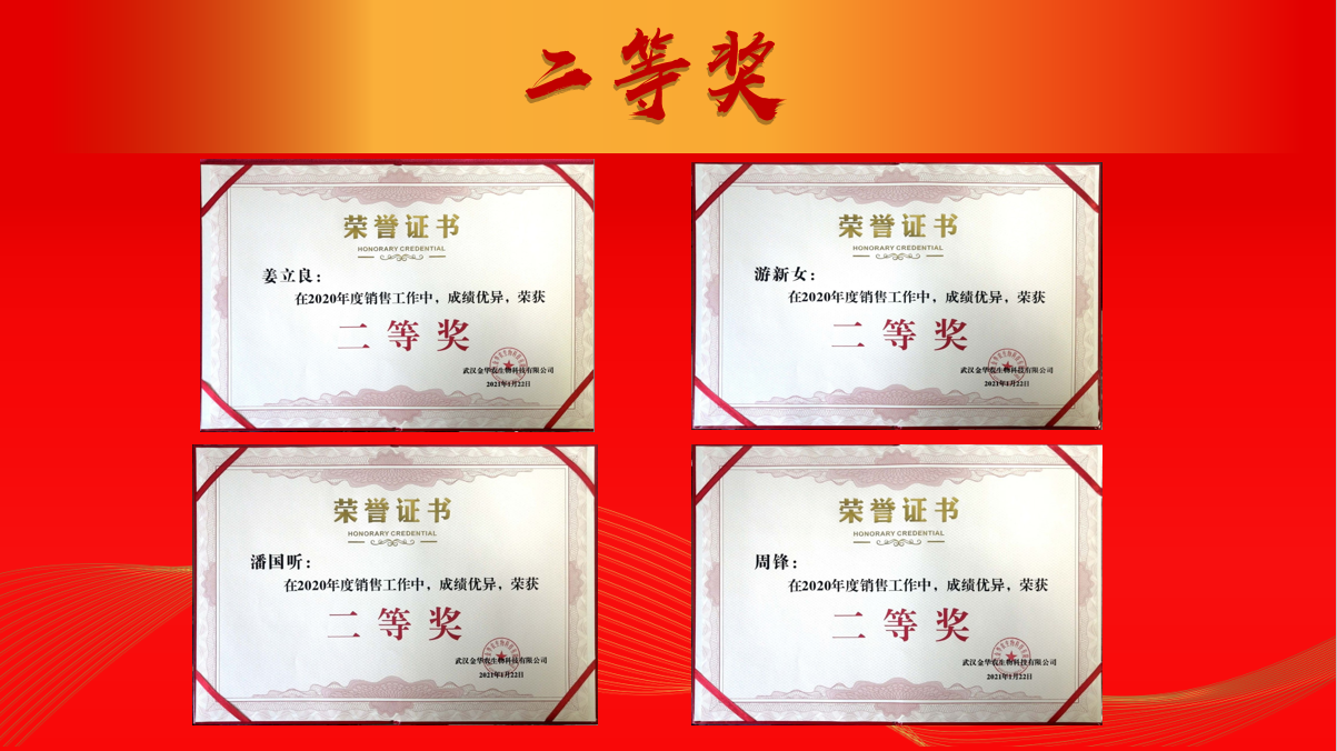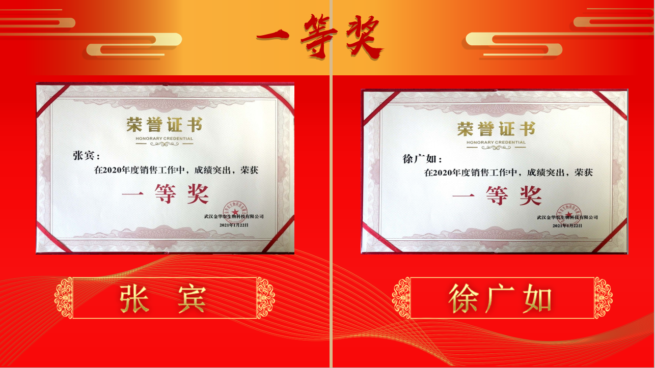 隨后,公司2020年度表彰頒獎儀式正式拉開序幕。2020年的市場大環(huán)境并不理想,但是眾多武漢金華農(nóng)人卻在形式嚴峻的工作環(huán)境中砥礪前行,取得了驕人的成績。富勝董事長表示,銷售團隊敬業(yè)和拼搏的精神,可敬!可佩!向大家過去一年逆勢飄紅的業(yè)績表示祝賀!