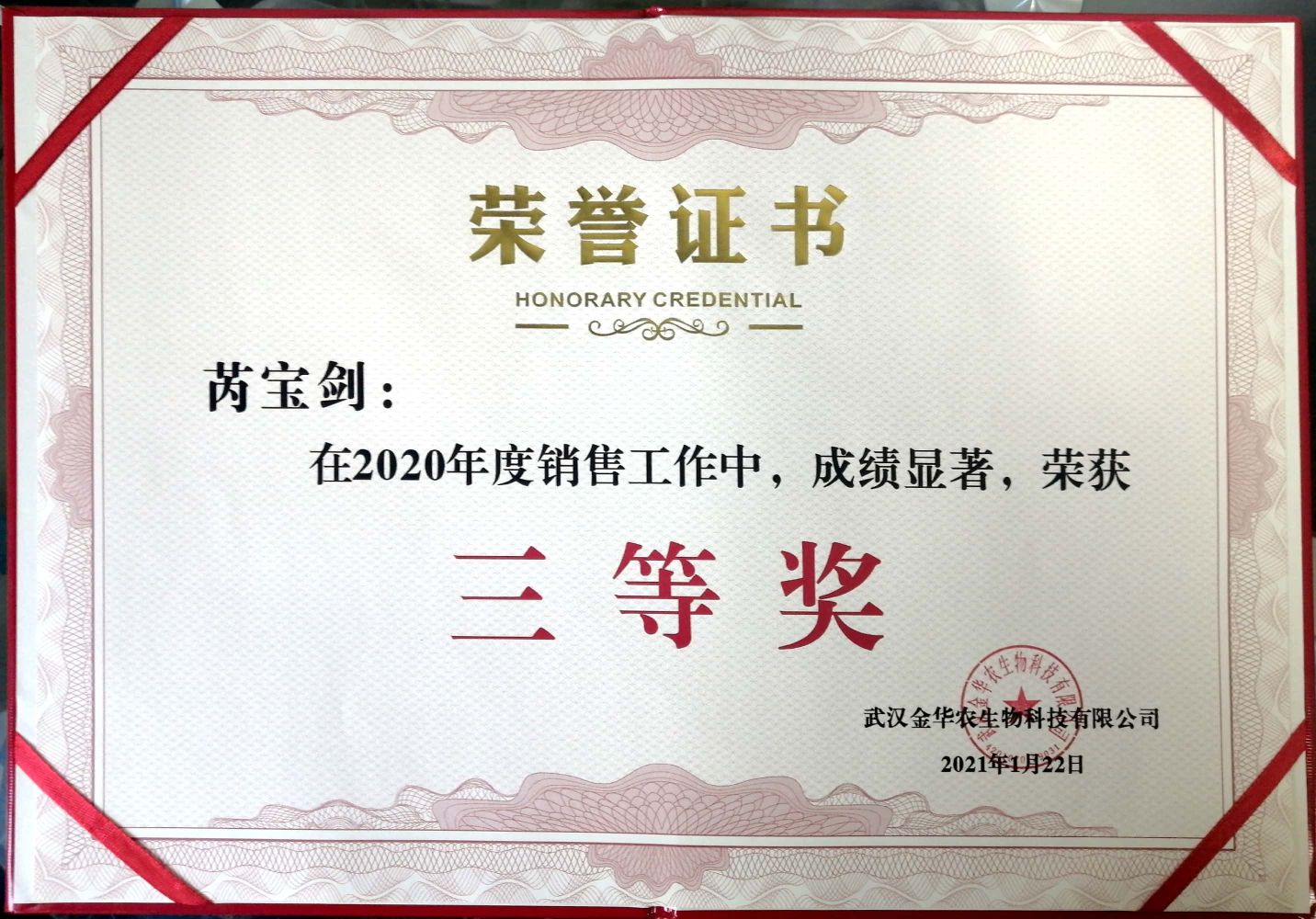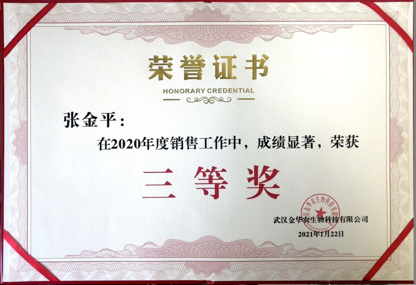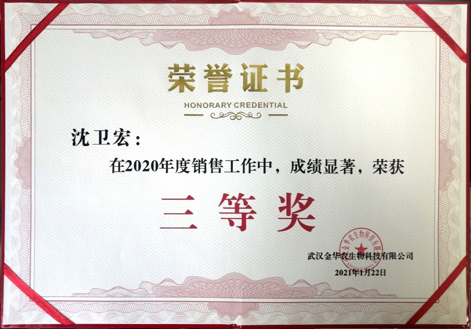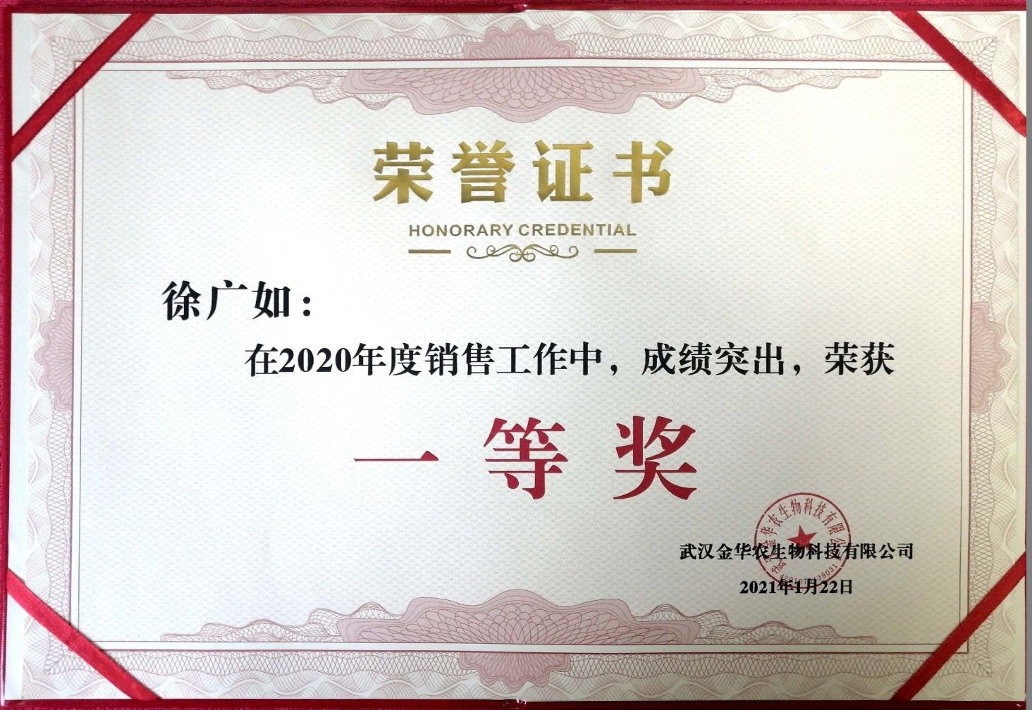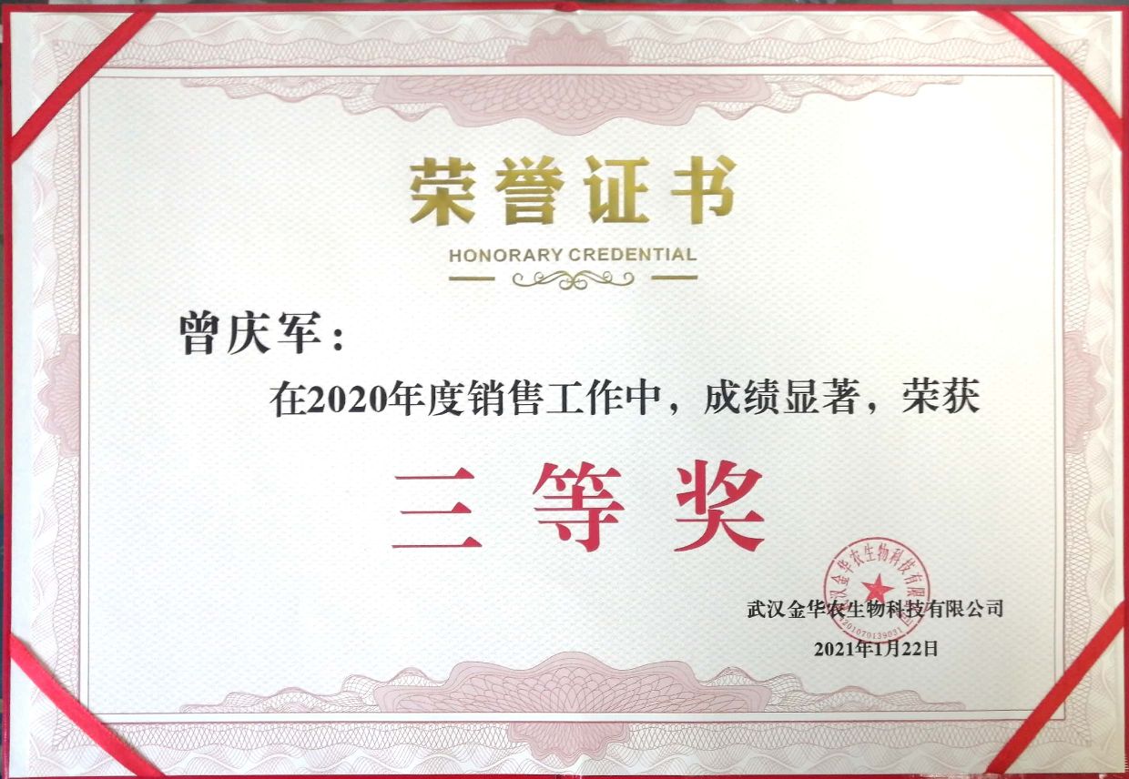 武漢金華農(nóng)生物2020年度銷售業(yè)績(jī)優(yōu)秀表彰獲獎(jiǎng)名單