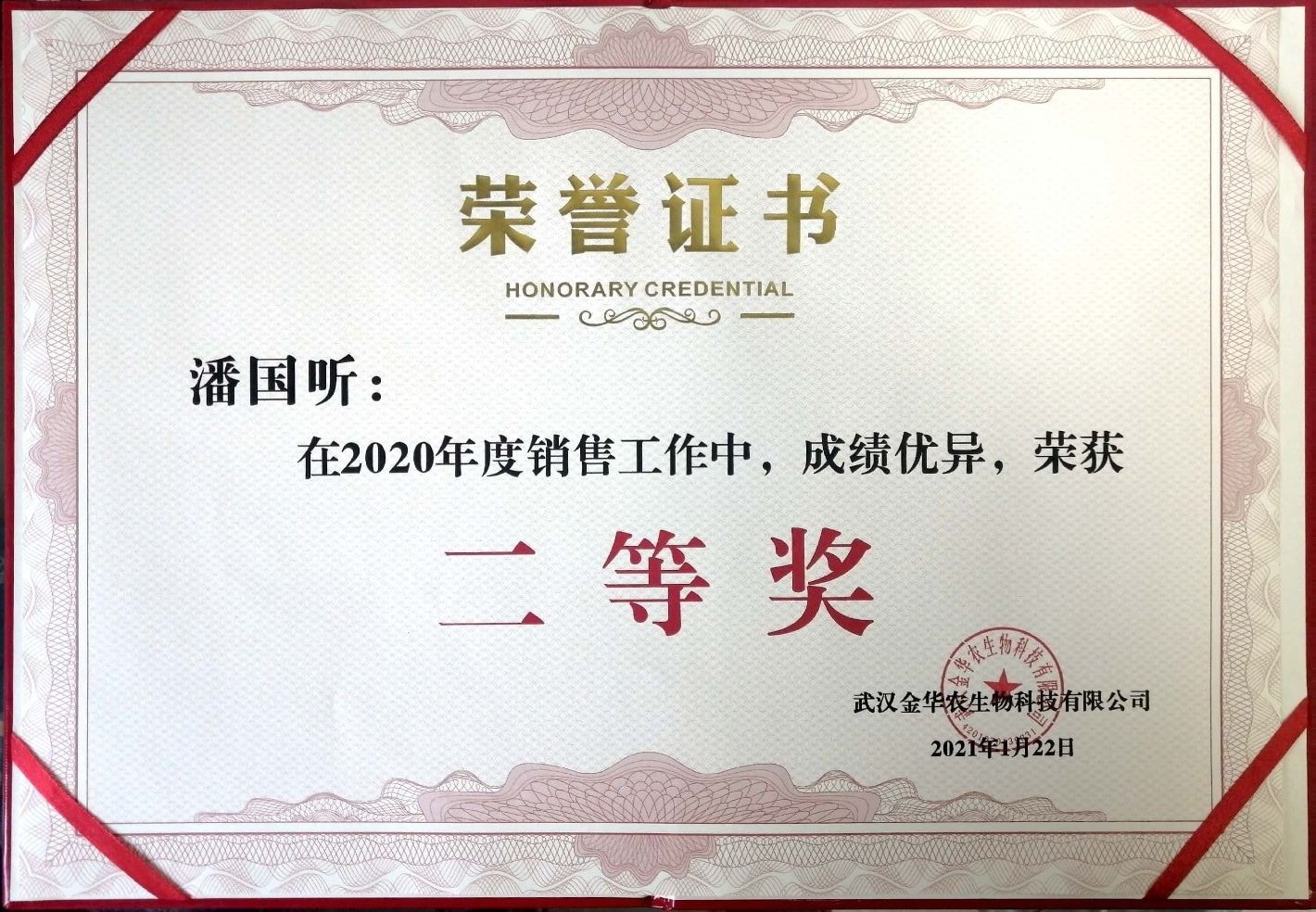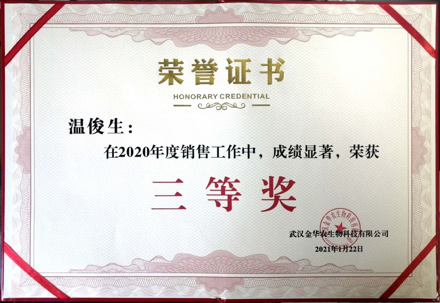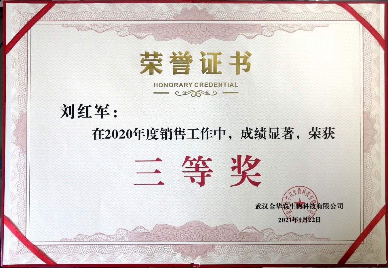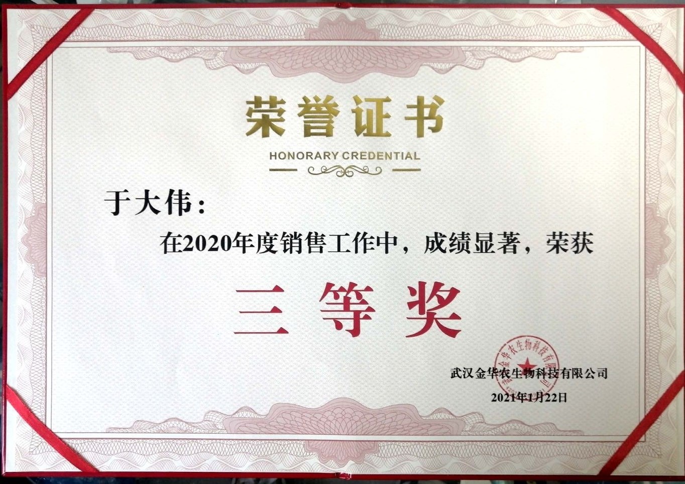武漢金華農(nóng)生物2020年度銷售業(yè)績(jī)優(yōu)秀表彰獲獎(jiǎng)名單