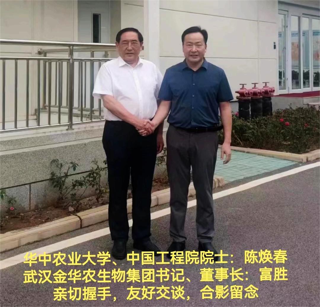 會議結束后,公司領導富勝董事長與陳煥春院士親切握手,友好交談,并留下了珍貴的合影。陳煥春院士對武漢金華農生物近年來取得的迅猛發展給予了高度贊揚。他充分肯定了公司在動物保健和飼料添加劑領域所取得的卓越成就,并對連續11年銷售業績增長的良好態勢表示由衷的贊嘆。富勝董事長衷心感謝陳煥春院士對公司的支持和肯定,并表示,武漢金華農生物將繼續秉承專精特新精神,聚焦主業,加大產品技術的研發投入力度,不斷提高公司創新能力與研發水平,通過專業、專注和致力于產業化精細建設,不斷打造中國動保行業的杰出品牌,為人類動保行業的健康發展做出更大的貢獻!