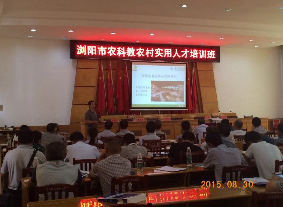 本次會議由湖南瀏陽地區戰略合作伙伴古港鎮畜牧獸醫站組織、策劃,公司大區經理王賢國老師主持,技術部專家姚教授、陳教授主講。此次豬病研討會的召開和養豬技術場長培訓班的成立,廣泛的宣傳了武漢金華農生物“綠色、健康、環保”的養殖理念,極大的提高了武漢金華農獸藥在湖南地區的影響力,為公司快速進軍湖南市場打下堅實的基礎!!