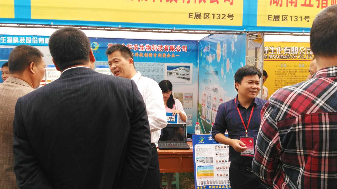 此次公司展位布置新穎,設計獨特,風格顯眼,新研發的產品也閃亮登場展示,行業主管領導和廣大規?;B豬場對武漢金華農公司產品一致認可和高度肯定,都贊揚稱頌 “金華農生物,中國動保杰出品牌”,“好獸藥,金華農造”?。?/span>
