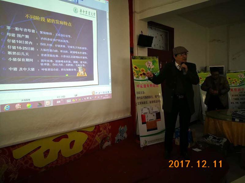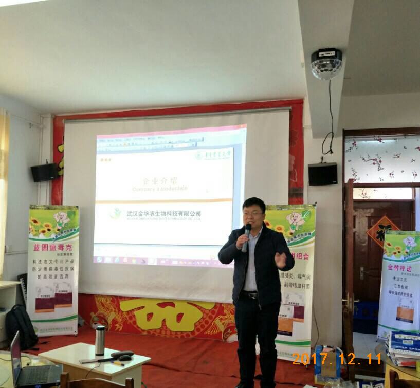 2017年12月11~12日,武漢金華農(nóng)生物“山東莒南冬季豬病防控與研討交流會(huì)”在山東臨沂地區(qū)勝利召開!公司領(lǐng)導(dǎo)徐巍副總經(jīng)理、技術(shù)部吳老師、大區(qū)負(fù)責(zé)人劉經(jīng)理參加本次會(huì)議,會(huì)議聽課豬場人數(shù)120多人,會(huì)議達(dá)到預(yù)期目的,豬病知識授課圓滿,養(yǎng)豬戶學(xué)習(xí)積極認(rèn)真。