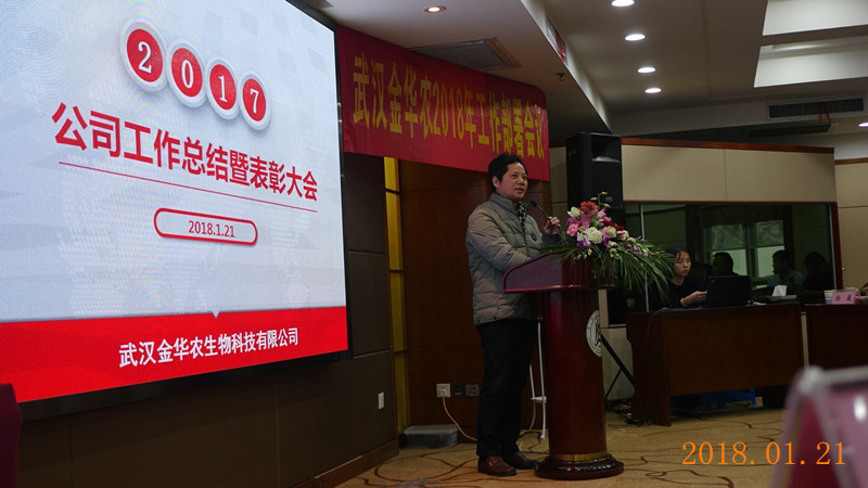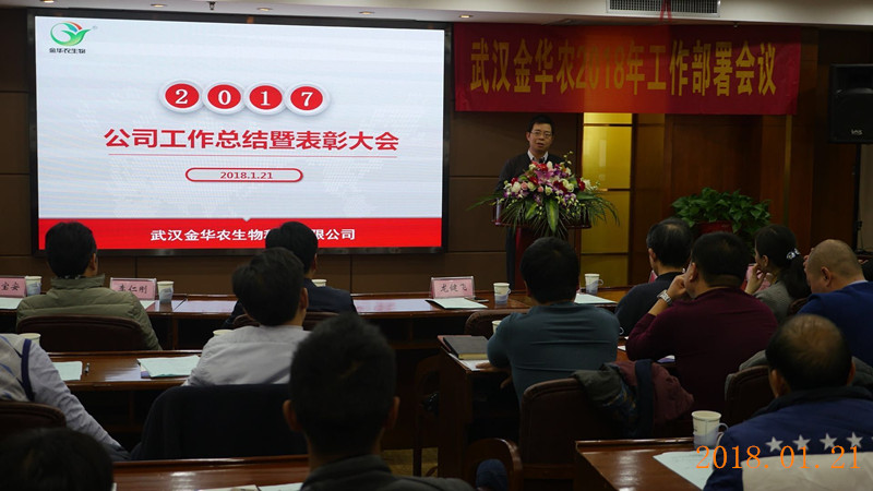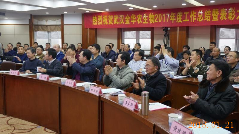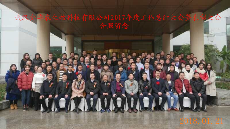 2018年1月20日~24日,武漢金華農(nóng)生物科技有限公司2017年度工作總結(jié)暨表彰大會(huì),在華中農(nóng)業(yè)大學(xué)隆重勝利召開,學(xué)校、院系領(lǐng)導(dǎo)、博士生導(dǎo)師、教授專家、公司高層、全國21個(gè)省市的精英代表齊聚盛會(huì),百人團(tuán)隊(duì)學(xué)習(xí)交流、總結(jié)經(jīng)驗(yàn)、表彰先進(jìn)、規(guī)劃未來。