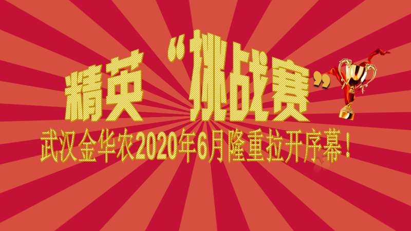 全體武漢金華農(nóng)人、優(yōu)秀的精英家人們,沖鋒的號角已經(jīng)吹響,勝利的鑼鼓熱鬧喧天,相聚的盛會激動人心,我們每位金華農(nóng)人都必須奮勇拼搏,砥礪前行,擼起袖子加油干,沖刺2020全年銷售目標任務,爭當冠軍和標兵,金獎榮譽,花落誰家?群雄爭霸,誰與爭鋒?提前預祝大家“挑戰(zhàn)賽”勝利凱旋,業(yè)績輝煌?。?!